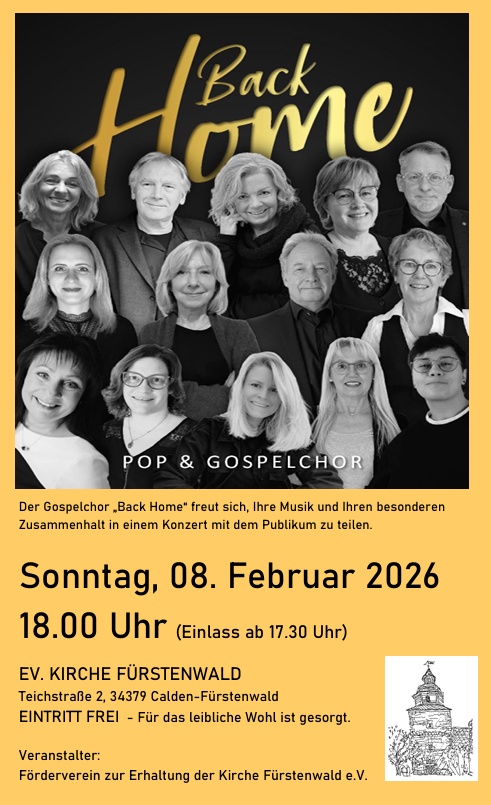 Am Sonntag, 8. Februar 2026 empfangen wir um 18.00 Uhr den Pop & Gospelchor „Back Home“.